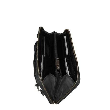 Liggend formaat portemonnee met ritssluiting. Deze portemonnee heeft 8 kaarthouders, 2 steekvakjes en een ruim ritsvak voor kleingeld. Met als extra nog een klein ritsvakje voorop.