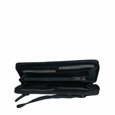 Liggend formaat portemonnee met ritssluiting. Deze portemonnee heeft 8 kaarthouders, 2 steekvakjes en een ruim ritsvak voor kleingeld. Met als extra nog een klein ritsvakje voorop.