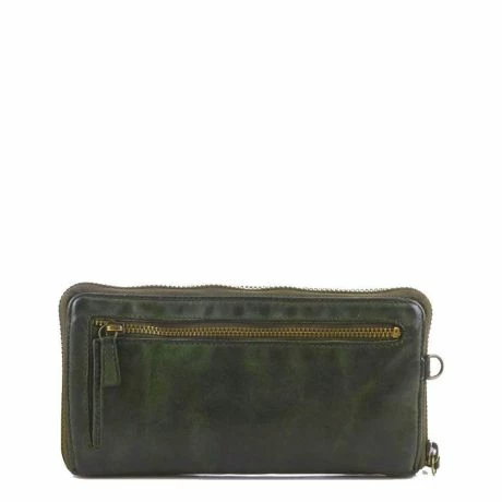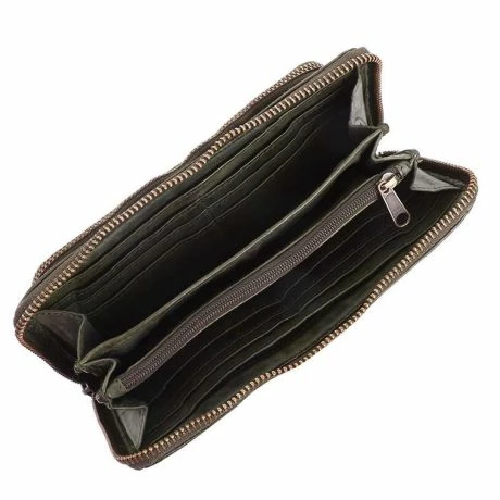 Liggend formaat met ruime indeling, voorzien van 12 kaarthouders, 3 steekvakken voor briefgeld en/of bonnetjes, en een intern ritsvak geschikt voor kleingeld. Met voorop nog een vrij ruim ritsvak voor eventuele essentiele spullen. Met polsband zodat je deze portemonnee ook als een clutch kunt gebruiken.