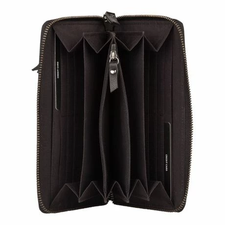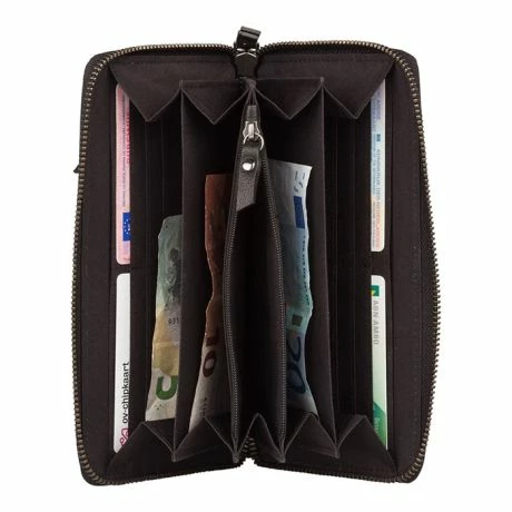 Ruim ingedeelde portemonnee met 4 steekvakken geschikt voor briefgeld, een ruim ritsvak voor kleingeld en 12 kaarthouders. Met RFID bescherming wat het skimmen van pasjes onmogelijk maakt.