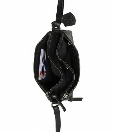 Dit crossbody model heeft 2 ritsvakken met in het midden een steekvak afsluitbaar middels een drukknoop. Het achterste ritsvak heeft 4 kaarthouders waardoor je je portemonnee met deze tas niet meer nodig hebt. Zo berg al je dagelijkse spullen overzichtelijk op maar heb je het snel bij de hand. Met smalle, verstelbare schouderriem op verschillende hoogtes draagbaar.