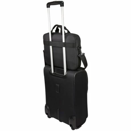 Laptop attaché schoudertas uit de Propel serie van Case Logic. Zeer ruim ingedeelde laptoptas met een groot hoofdcompartiment en met gevoerd EVA Impact Foam laptopvak geschikt voor een 14″ laptop (34×24 cm), Dit gedeelte is ook voorzien van gewatteerd 12 inch tablet vak. Het accessoire vak voorop is groot genoeg ruimte voor je muis, kabels of andere accessoires. Ook voorop zit een georganiseerd vak en netvak waarin je al je spullen als sleutels, pennen, kaarten en kleine documenten kunt opbergen. Op de achterzijde zit een smart sleeve waardoor je de tas aan een trolley kunt bevestigen. Het extra ritsvak voorop is een verborgen vak voor je telefoon. Prettig in gebruik met stevige handgrepen en verstelbare, afneembare schouderriem.