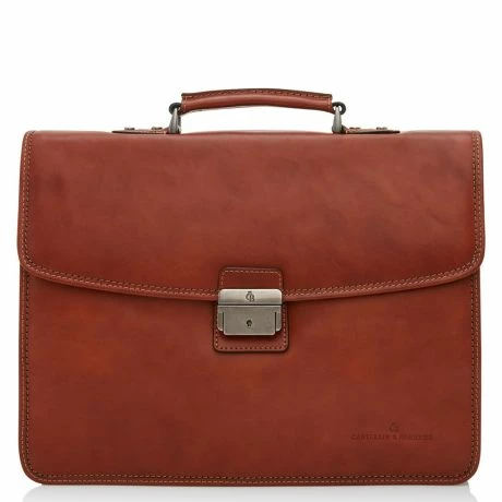 Lederen aktetas uit de Verona serie van Castelijn en Beerens. De Verona-serie is gemaakt van prachtige Italiaanse runderhuiden. Het C&B-logo is subtiel als praeg verwerkt. Ruime indeling met 3 compartimenten waarvan een met gevoerd en met ritssluiting geschikt voor een 13.3″ laptop of tablet. De steekvakken bieden voldoende ruimte voor al je zakelijk ‘A4’ materialen. Met klepsluiting en gesp. Comfortabel in gebruik met stevig handvat en verstelbare, afneembare schouderriem.