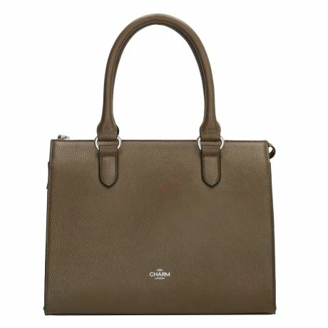 Handtas uit de Stratford serie van Charm London. Handtas met namaak leren uitstraling gemaakt van stevig polyester. Compact formaat met precies genoeg ruimte voor al je dagelijkse spullen. Volledig afsluitbaar middels een rits. Met intern extra steek- en ritsvakje. Prettig in gebruik met stevige handvatten en een verstelbare, afneembare schouderriem.
