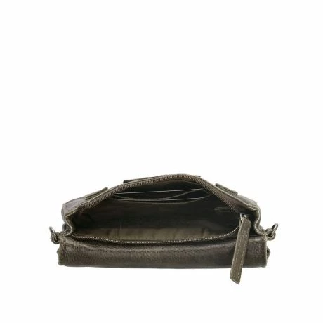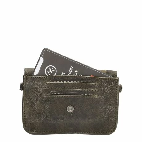 Crossover schoudertas met smalle, verstelbare en afneembare schouderriem en 2 lusjes achterop waarmee je de tas aan je riem kunt bevestigen zodat je je handen helemaal vrij hebt. Het voorste vak heeft een klepsluiting met magnetische drukknoop en is geschikt voor de meeste smartphones. Achterop zit een ritsvak waarin je je ‘belangrijkste’ dagelijkse spullen kwijt kunt. Met in totaal 4 ‘credit’ card vakjes heb je je portemonnee niet eens meer nodig.