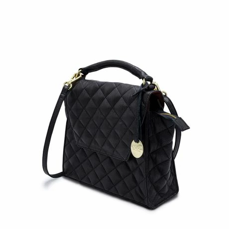 MOSZ Handtas Phoebe Quilted Black Shiny Light Gold -NL Rugzak Verkoopwinkel phoebe handbag quilted black zijkant