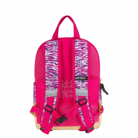Rugzak voor kinderen van Pick & Pack. Deze rugtas is speciaal gemaakt voor kinderen vanaf 5/6 jaar en zijn zeer praktisch. Dankzij het juiste formaat is de rugtas geschikt voor A4 formaat schoolspullen, een lunchbox en alle andere benodigdheden. Voorzien van een speciaal vak voor een waterfles. Aan de binnenzijde zit een klein ritsvakje, vakje voor telefoon en een makkelijke sleutelhouder. Met daarop een adres label voor naam, adres en telefoonnummer. Makkelijk voor als de rugtas eens ergens wordt vergeten! Een apart gewatteerd vak is bereikbaar met een rits, hierin kunnen boeken of zelfs een 13″ laptop worden opgeborgen. Voorop een borstbandje om de rugzak stevig vast te maken tijdens het lopen. De rugtas is ook voorzien van kleine reflecterende details zodat je ook in het donker opvalt. Dankzij de gewatteerde schouderbanden en het ergonomische rugdeel is de tas goed door het kind zelf te dragen.