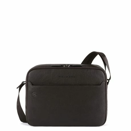 Lederen crossbody schoudertas uit de Black Square serie van Piquadro. De collectie Black Square is gemaakt van full-grain Toscaans kalfsleer dat bewerkt is met plantaardige verf. De ongelijke look is het resultaat van een origineel proces, dat de warmte en de eigenschap van echt, onbewerkt leer behoudt. Na het looien plaatsen de deskundige handen de huiden in grote vaten gevuld met water zonder chemische stoffen toe te voegen. Het leer wordt dan gedroogd in trommels en vervolgens uitgelegd zodat vezels ontspannen. Dankzij dit proces, is elk stuk van de Black Square-collectie uniek.