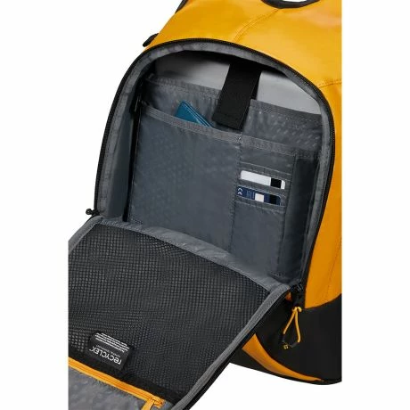 Laptop rugzak S uit de nieuwe Ecodiver serie van Samsonite. Met Ecodiver brengt Samsonite een vervolg serie op de jarenlang succesvolle Paradiver serie, maar dan met ECO materialen en de nieuwste reismogelijkheden. De Ecodiver is een serie die praktisch gebruik combineert met een stijlvol design, gemaakt van duurzaam recycled PET onder de naam Recyclex en gecoat water afstotend materiaal.