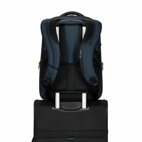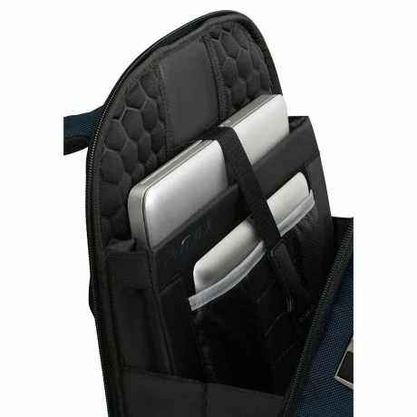 Laptoprugtas uit de Pro-DLX 6 serie van Samsonite. De backpack 15.6″ heeft een ruim formaat met alle gemakken voorzien, geschikt voor A4 materiaal, voorzien van gewatteerd 15.6″ laptop (37.5×25.9 cm) cm) en tablet vak (26.6×18.3 cm). Met georganiseerde voorvakken en USB aansluiting berg je al je ‘zakelijke’ spullen overzichtelijk op maar heb je ze tegelijk altijd bij de hand. Zeer praktisch in gebruik met verstelbare, gewatteerde rugzakriemen, smart sleeve achterop waarmee je de rugtas aan een trolley kunt bevestigen. en twee drinkfleshouders aan de zijkant.