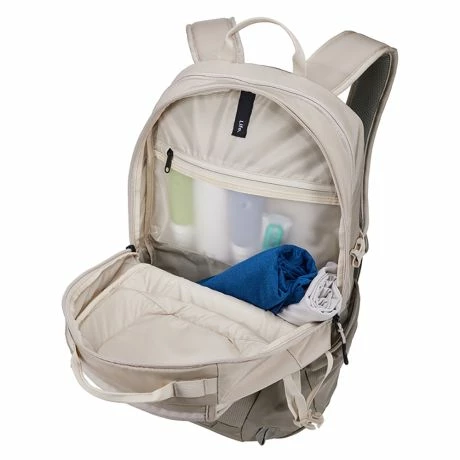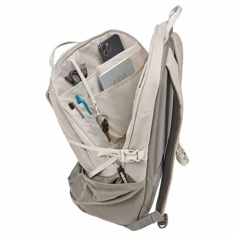 Laptoprugtas uit de EnRoute serie van Thule. Stijlvolle en praktische rugzak van alle gemakken voorzien met een inhoud van 26 liter. Ga je graag op de fiets naar het werk of ga je er in het weekend vaak een dagje op uit? Dan gebruik je deze Thule rugtas om al je spullen georganiseerd en droog te vervoeren. Deze waterbestendige rugzak beschermt je 15,6 inch laptop tegen een regenbui. De rugtas is opgedeeld in drie compartimenten. Het voorste compartiment heeft een verstevigde buitenkant, waar jij jouw zonnebril of telefoon veilig in kunt bewaren. Het middelste compartiment beschikt over voldoende ruimte voor een extra set kleding of accessoires. Daarnaast bevat dit deel over een waterbestendige TPU-vak waar je kleine natte of vuile items in kunt opbergen. Het laatste compartiment is voorzien van een 15,6″ inch laptopvak, 10,5″ inch tabletvak, drie steekvakken, één ritsvak en een sleutelhaakje. Je ziet het, deze rugtas komt aan niks te kort!