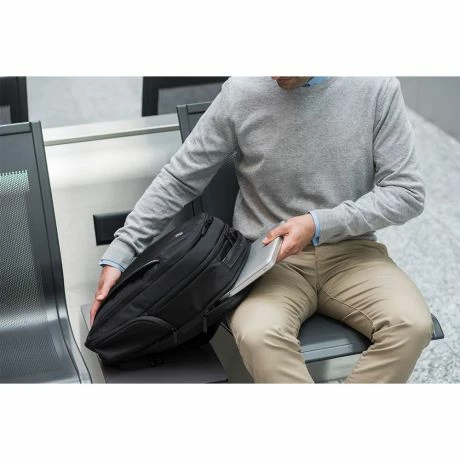 – Gewatteerd laptop- en tabletvak aan de achterzijde