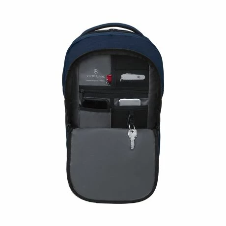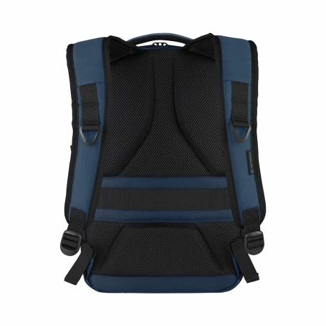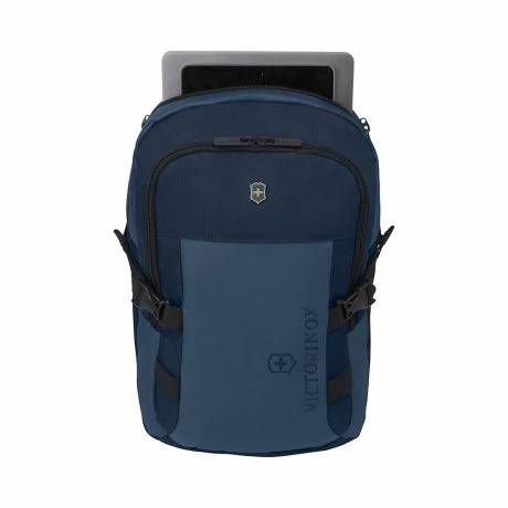 Laptoprugtas uit de Vx Sport Evo serie van Victorinox. De Vx Sport serie van Victorinox werd met het oog op duurzaamheid herzien en daaruit is de Vx Sport Evo serie ontstaan. Gemaakt van 100% 900D Polyester, een mega sterk, waterafstotend en duurzaam materiaal. Bij Victorinox denk je niet alleen aan duurzaamheid maar net zo goed aan praktisch. De Compact Backpack is dan ook handig ingericht met een gewatteerd 15″ laptopvak en een extra tablet vak. Multifunctionele zijvakjes en een georganiseerd voorvak voor kleinere spullen. Het rugpaneel ademt door de ‘flow channels’ en de schouderbanden zijn dik gewatteerd voor extra comfort bij zware belading. De tas kan met de banden aan de zijkant in diepte worden aangepast aan de inhoud. De straps zorgen ook voor een langere levensduur van de ritsen omdat er minder druk op komt te staan. De smart-sleeve achterop maakt dat de tas gemakkelijk op een trolley vervoerd kan worden. Al met al een daypack die heel wat jaartjes mee kan en mooi blijft.