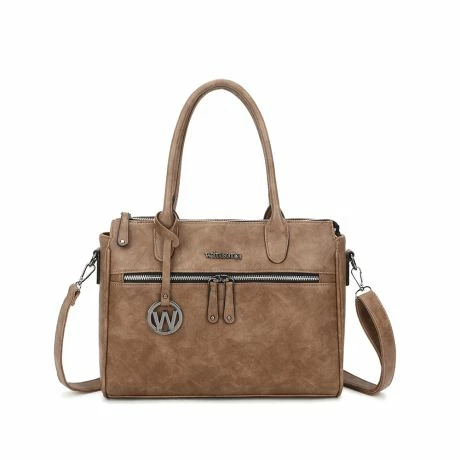 Schoudertas met tablet vak uit de Bambina serie van Wimona. Deze kleine schoudertas heeft een hoofdcompartiment met een tabletvak en intern steek-en ritsvak, perfect voor al je dagelijkse spullen. Het compartiment is ruim genoeg voor A4 materiaal. Dit maakt de tas ook geschikt om mee naar school of werk te nemen. Prettig in gebruik met twee ruime schouderbanden en een verstelbare en eventueel afneembare schouderriem.