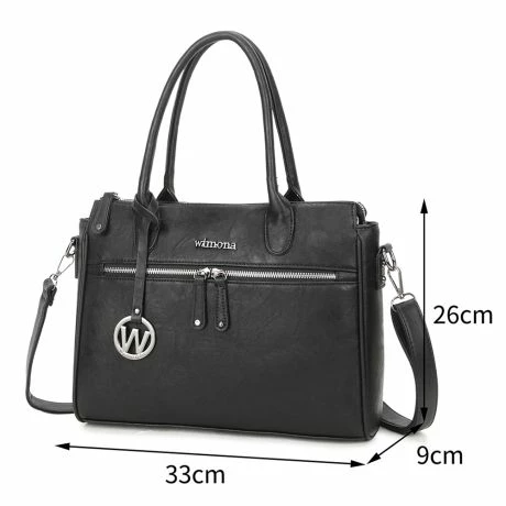 Schoudertas met tablet vak uit de Bambina serie van Wimona. Deze kleine schoudertas heeft een hoofdcompartiment met een tabletvak en intern steek-en ritsvak, perfect voor al je dagelijkse spullen. Het compartiment is ruim genoeg voor A4 materiaal. Dit maakt de tas ook geschikt om mee naar school of werk te nemen. Prettig in gebruik met twee ruime schouderbanden en een verstelbare en eventueel afneembare schouderriem.