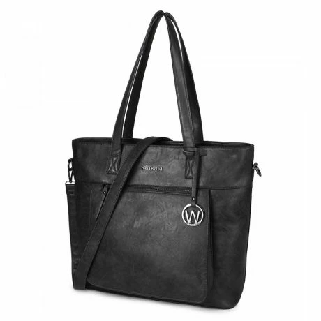 Schoudertas uit de Evelina serie van Wimona. De tas is zeer ruim ingedeeld, bevat ruimte voor A4 documenten en heeft een organisatiepaneel voor een smartphone, portemonnee en pennen. De tas is van binnen praktisch ingedeeld, heeft een vak ter afscheiding met ritssluiting en een apart laptop/ tabletvak. De schoudertas bevat naast ruime handvatten ook een afneembare schouderriem, waardoor de tas ook over de schouder draagbaar is.